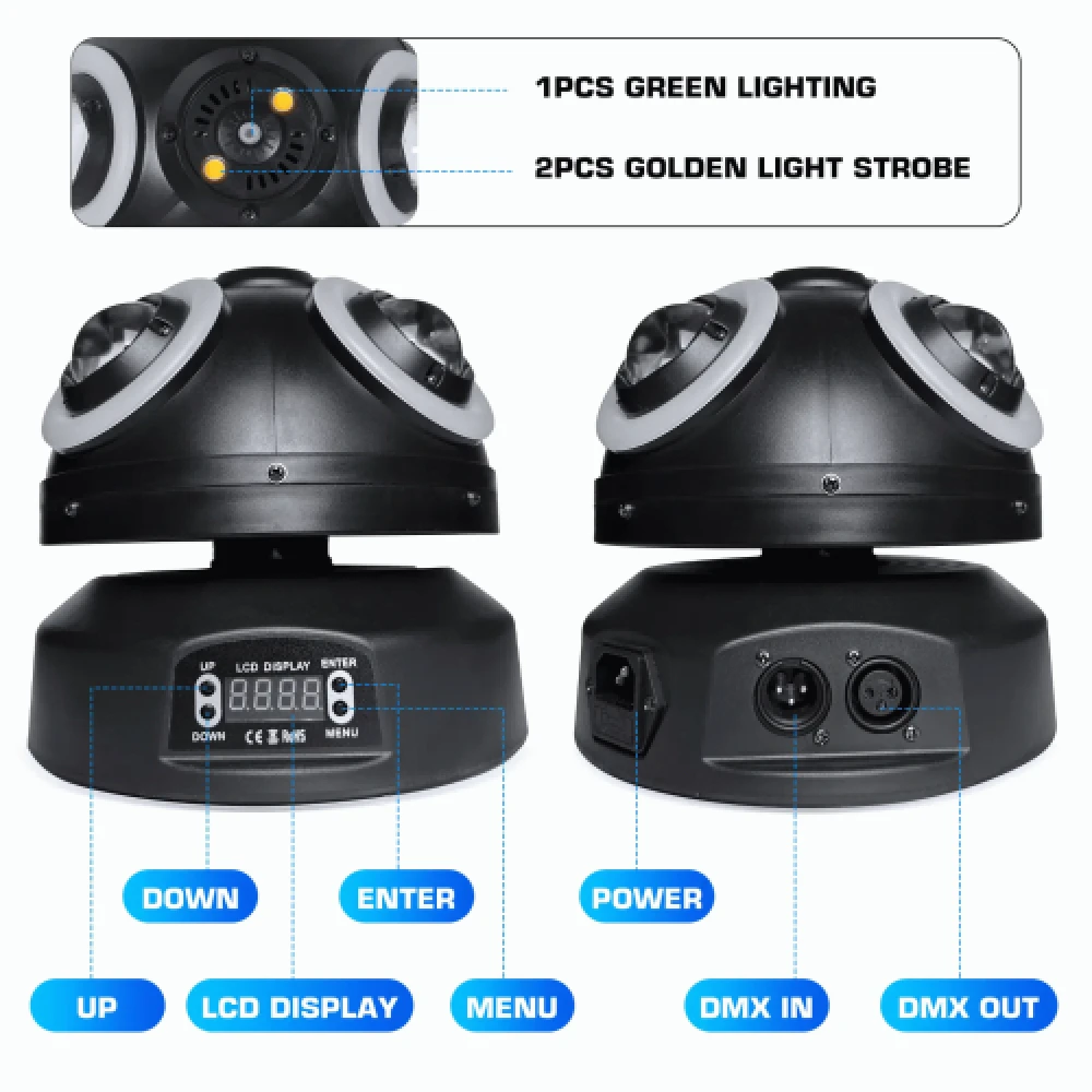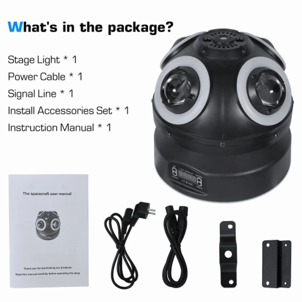 Wordt geleverd ophangbeugel, powerkabel en dmx kabel
