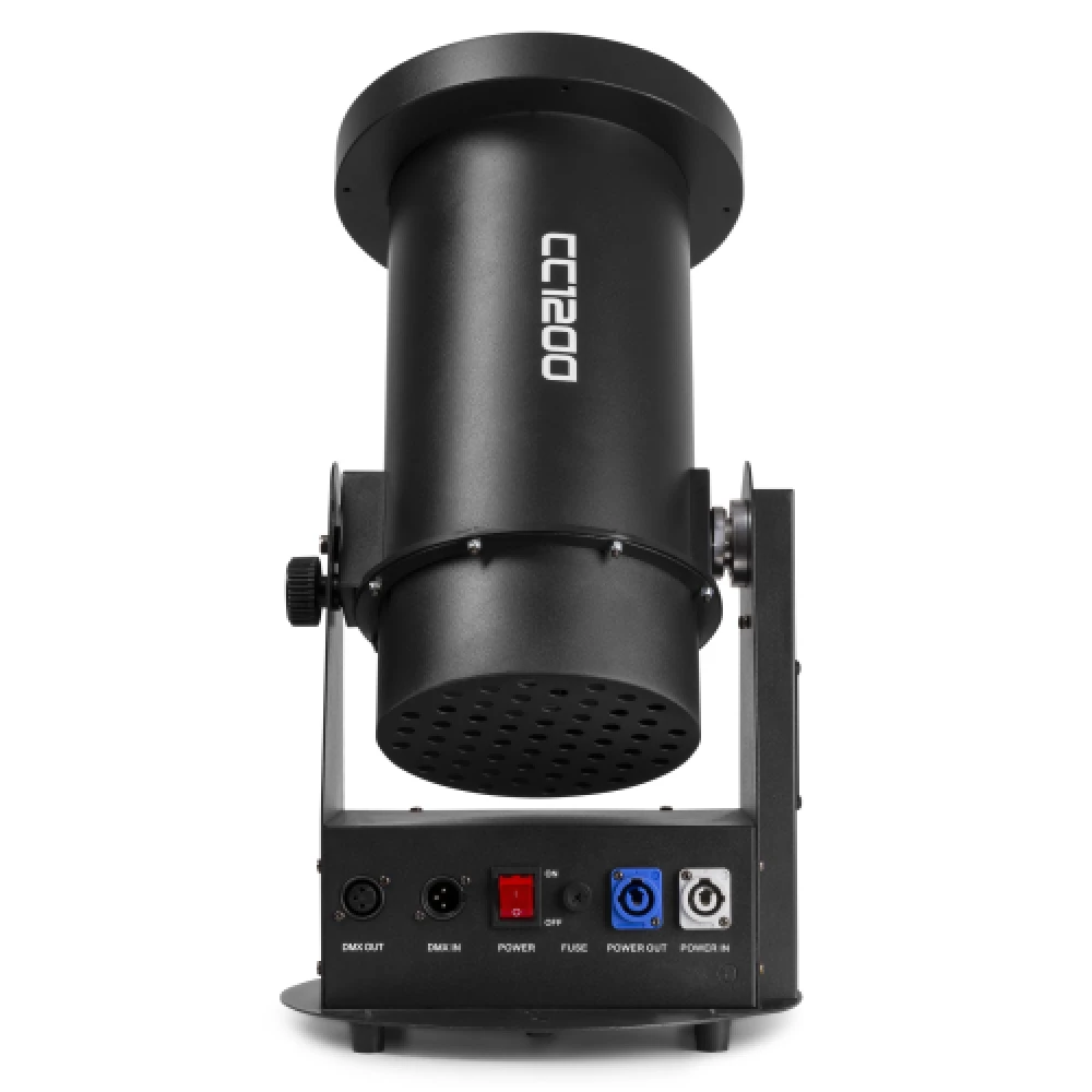 De Beamz CC1200 is een simpel apparaat dat een gaaf effect creëert. De confetti launcher wordt gevuld met confetti en blaast geleidelijk alle snippers de lucht in. Hij werkt met een ventilator dus er hoeft geen perslucht gebruikt te worden.
